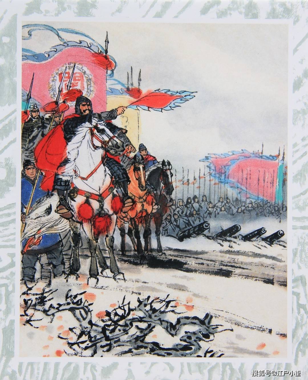 看,多有意境,落日照大旗,马鸣风萧萧。一幅画将辽海崩溃的背景传神交代,既然军队崩了,那么主帅何去何从?