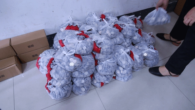 一大早,王女士就把称重分装好的150袋硬币,分批运到诸暨农商银行库管中心。