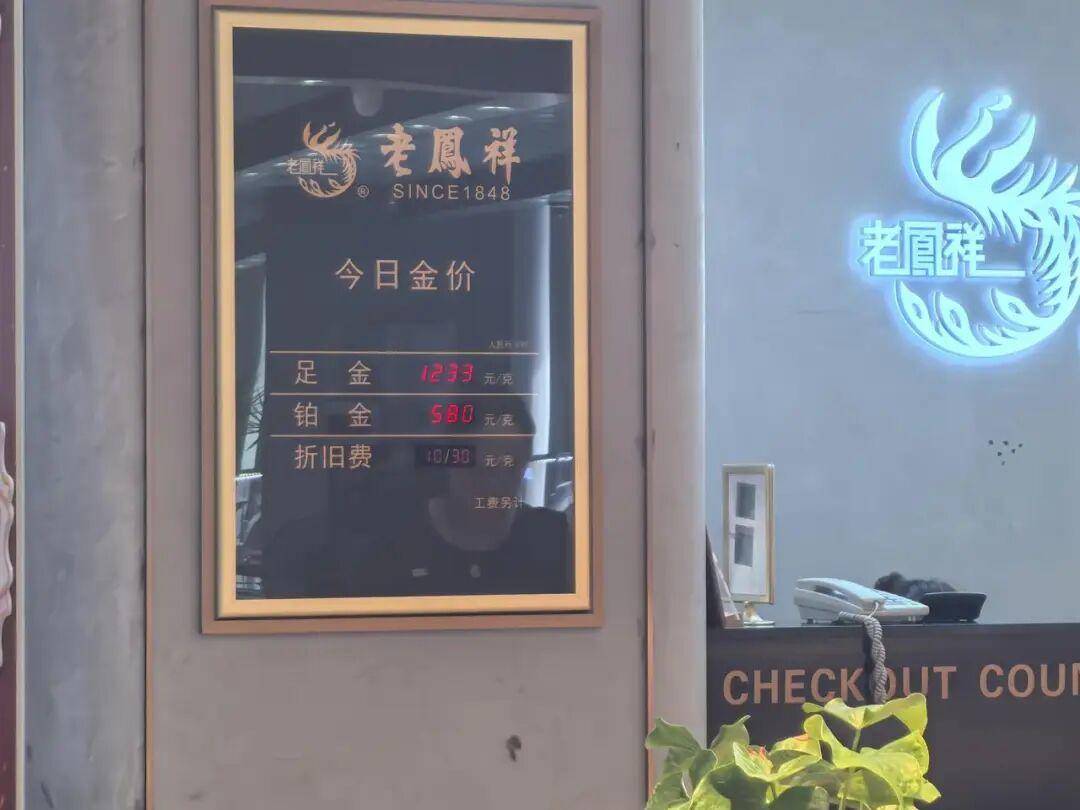 受国际金价影响,珠宝品牌足金首饰价格也随之上涨。15日,周大福足金饰品价格已调整为1235/克,较昨日价格上涨20元/克。老凤祥足金饰品价格1233元/克,同样上涨迅猛。