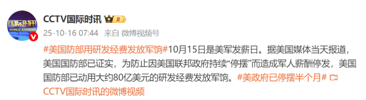 10月15日是美军发薪日。据美国媒体当天报道,美国国防部已证实,为防止因美国联邦政府持续“停摆”而造成军人薪酬停发,美国国防部已动用大约80亿美元的研发经费发放军饷。