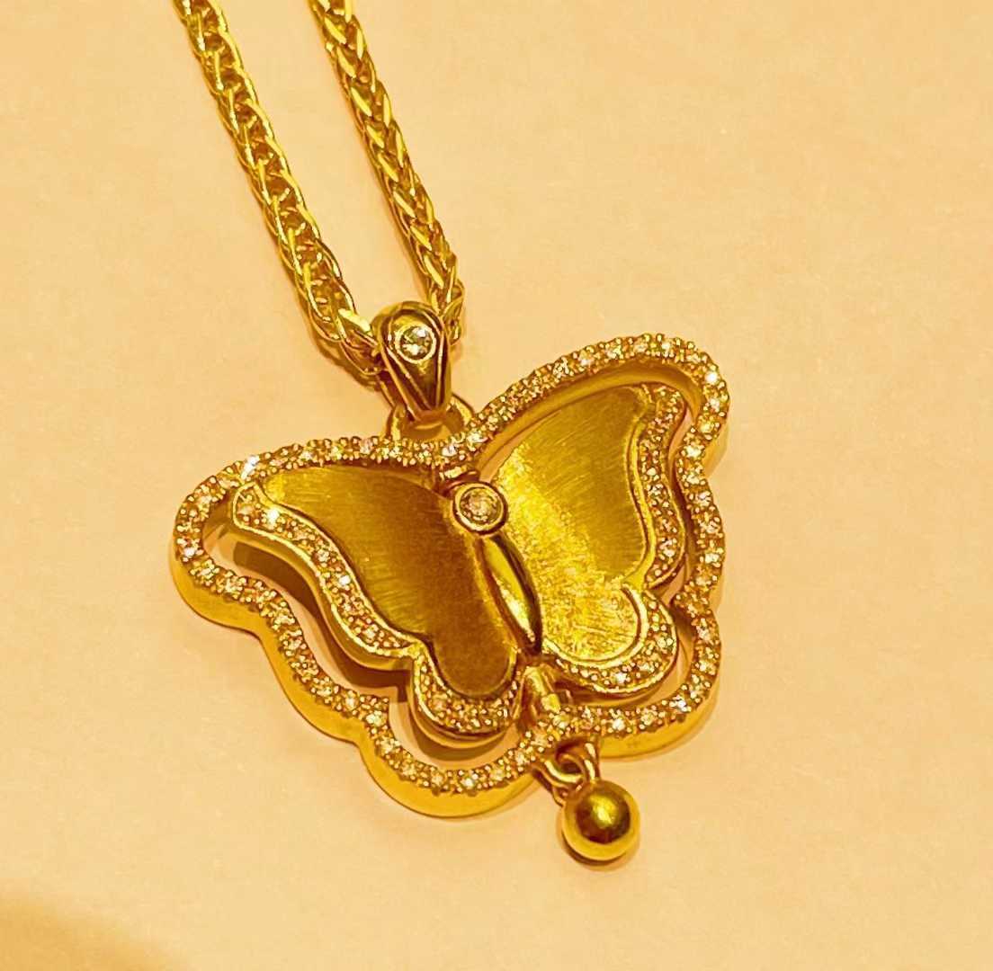 需要提到的是,这些产品分类在老铺黄金中都找到对应。而点钻蝴蝶项链、金刚杵吊坠、点钻葫芦吊坠、花丝素金戒指等老铺黄金的热门款在宝王府店内也能找到类似款。