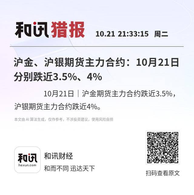 10月21日|沪金期货主力合约跌近3.5%,沪银期货主力合约跌近4%。