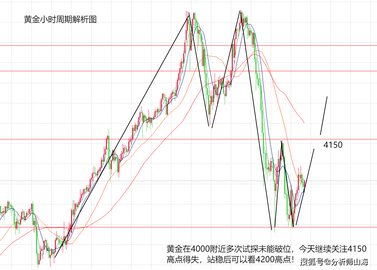 山海:黄金4000强势支撑,多空反复对垒选择方向!