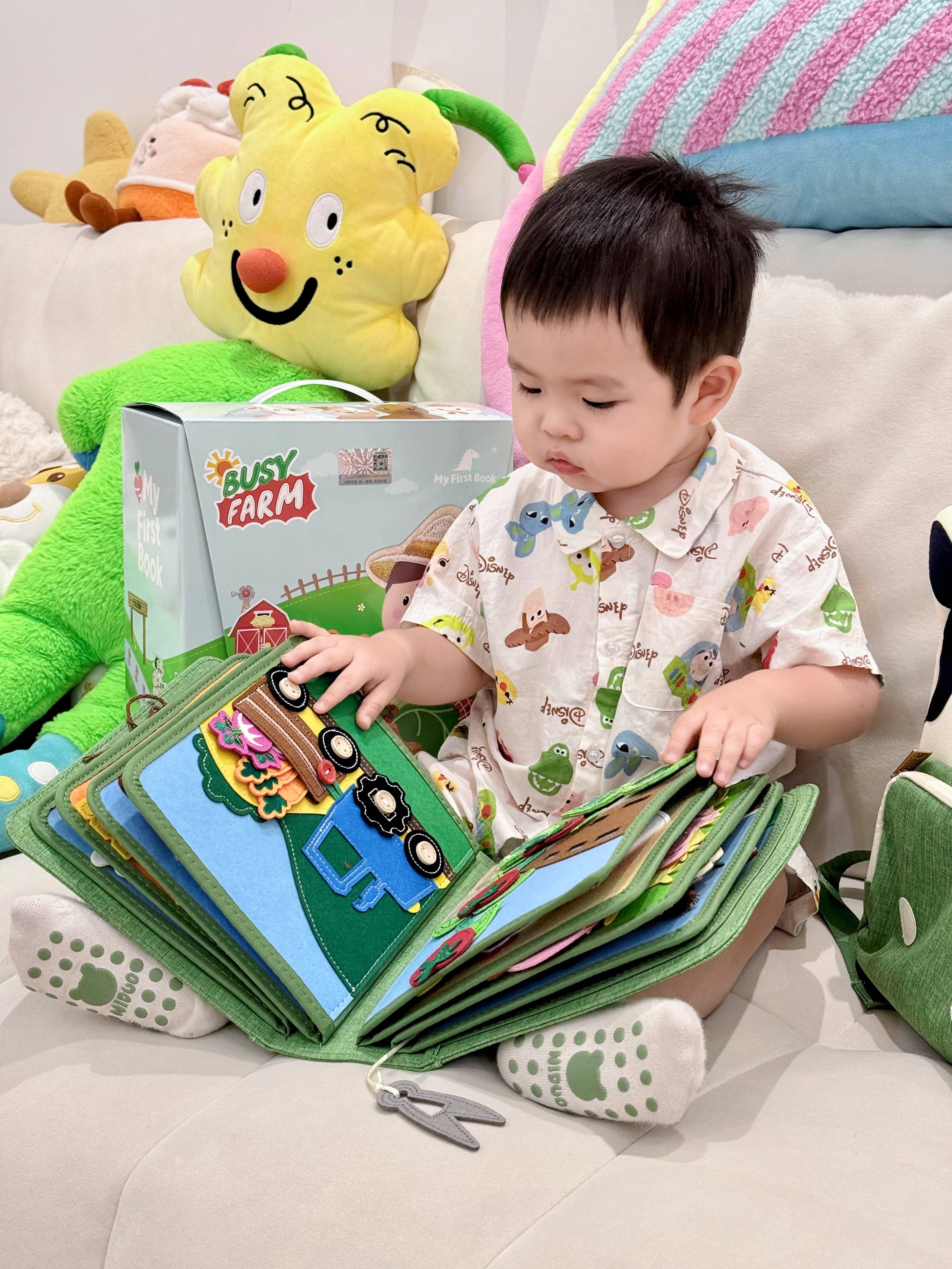 上海二胎家庭中,2岁半的姐姐通过农场布书学习动物名称与声音。妈妈发现,孩子不再机械重复“羊-咩咩”,而是会指着布书说:“小鸡喂奶,小猪孵蛋。”布书的场景化设计让语言与动作、情感关联,6个月后词汇量从200个增至800个,能完整描述“我要掰玉米给妈妈吃”等短句。
