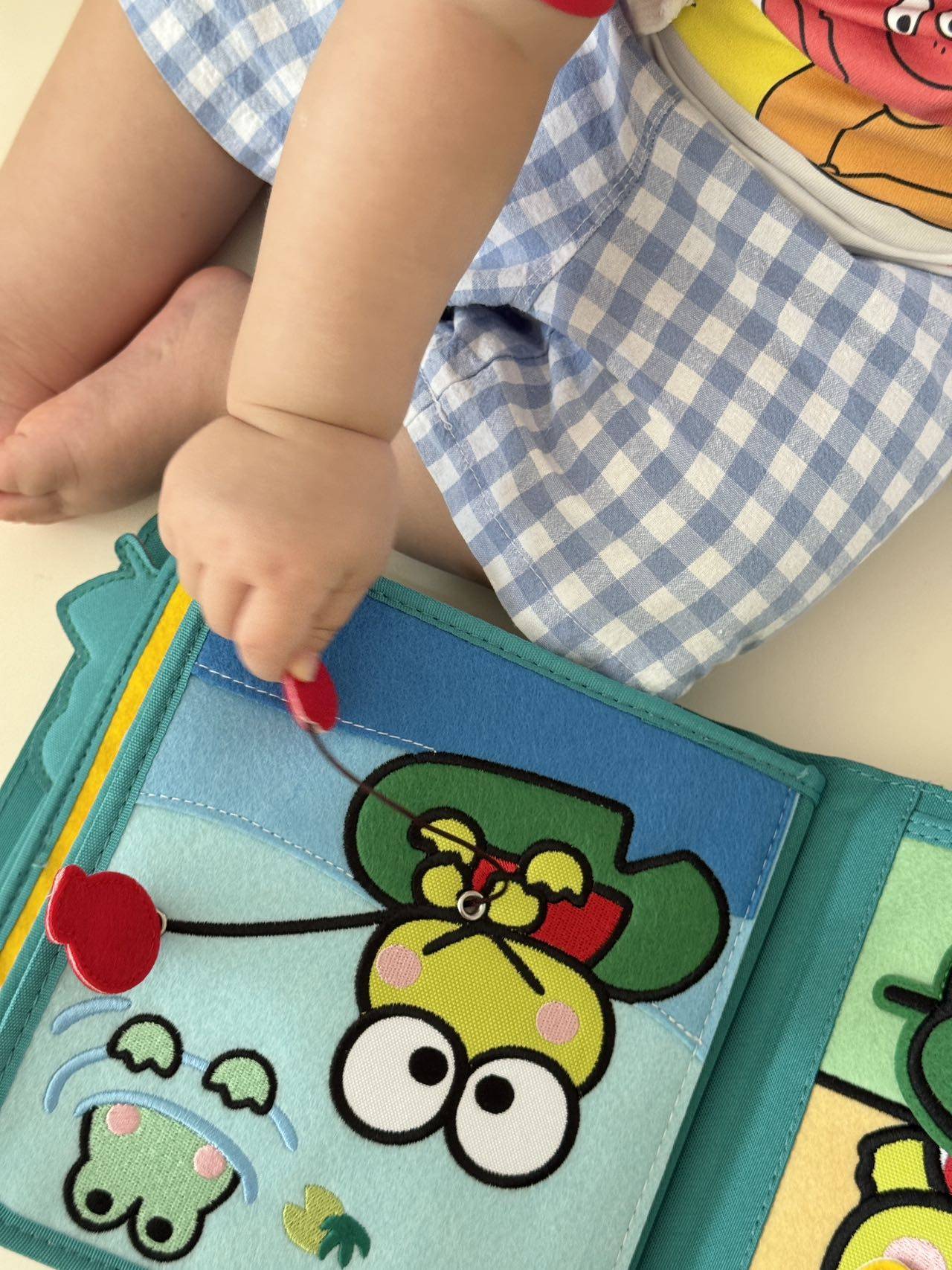 通过系鞋带、扣纽扣、晾衣服等机关,模拟真实生活场景,让孩子在操作中理解“顺序”“分类”“责任”;农场主题布书里隐藏式魔术贴、可拉动的小鸭子、触感绒毛小羊,将“观察-命名-模仿”融入游戏,语言与感官同步发展;宠物主题布书有不同的萌宠动物,帮助宝宝识别“开心”“生气”“害怕”“放松”,为社交能力打基础。