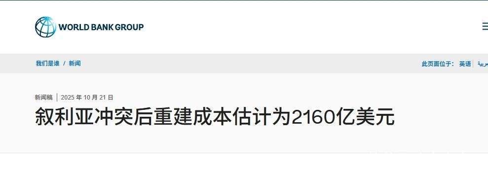 2025年10月,世界银行发布了一份评估报告,为刚刚从长达14年的内战创伤中恢复的叙利亚带来了沉重的打击。报告指出,叙利亚要实现全面的国家重建,至少需要投入2160亿美元。这一数字几乎是叙利亚2024年GDP的十倍,意味着即使全体国民完全停止消费,积累十年的经济产出,才可能负担得起重建的基本费用。 回顾2011年,叙利亚局势起初只是一些街头抗议活动,然而未曾预料的是,这些抗议最终引发了一场持续十多年的全面战争。战火蔓延从首都大马士革到阿勒颇省,几乎席卷了全国各地,昔日被誉为中东文明摇篮的叙利亚彻底分裂。尽管大规模军事对抗已逐渐平息,但战争所留下的废墟依然令人触目惊心:电力系统几乎瘫痪,许多地区一到晚上就陷入黑暗;大量民居倒塌,成千上万的家庭只能在临时搭建的简易帐篷中度日;许多公共设施如教育和医疗系统损毁严重,社会服务几乎瘫痪,民众的日常生活困难重重。