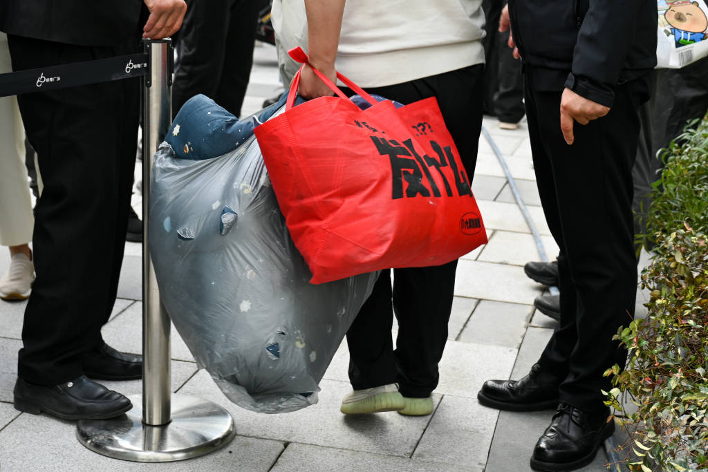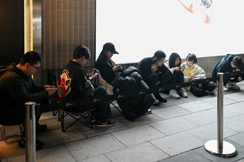 10月24日深夜,上海,排队等候的顾客带着书和手机打发时间。澎湃新闻记者 朱伟辉 图