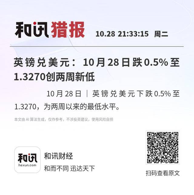 10月28日|英镑兑美元下跌0.5%至1.3270,为两周以来的最低水平。