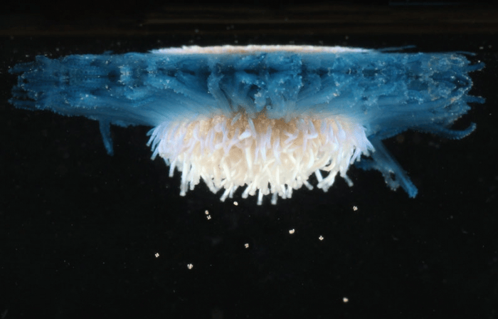在繁殖方面,银币水母主要通过出芽生殖的方式在繁殖期向水体释放大量水母体。这种繁殖方式使它们在适宜条件下能够迅速扩大种群数量。