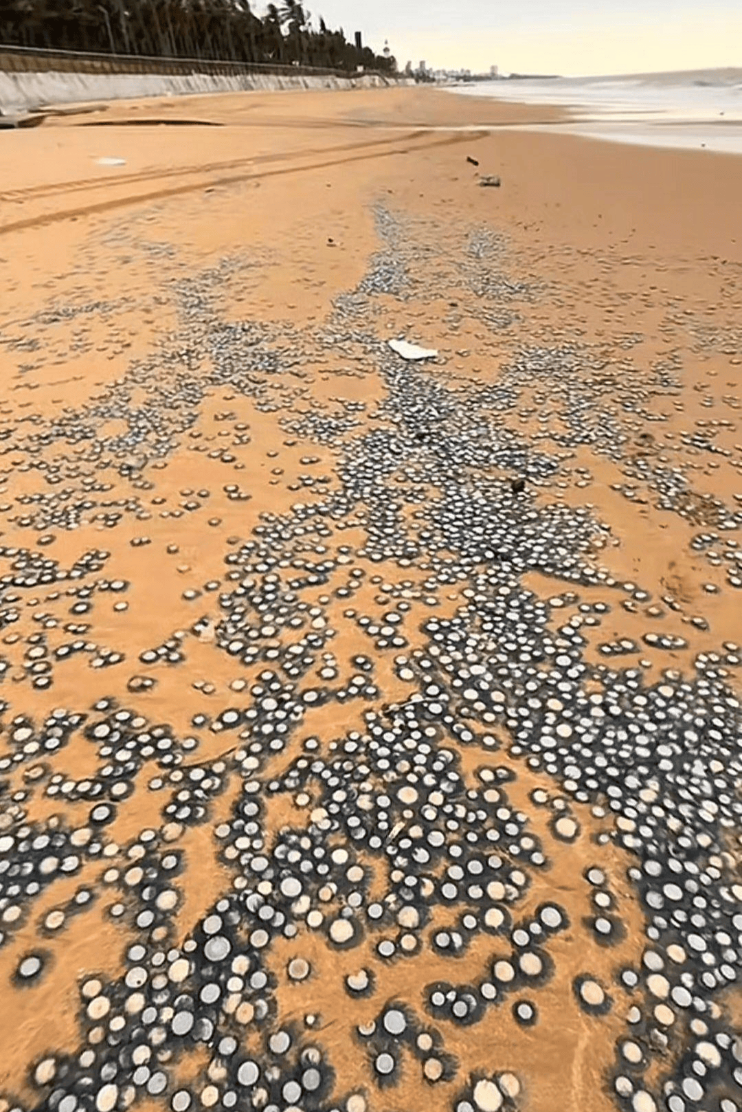银币水母的命运完全取决于海洋的脾气。它们不会游泳,不会抗拒,只能随波逐流,成为海洋与陆地交汇处一道短暂而美丽的风景。