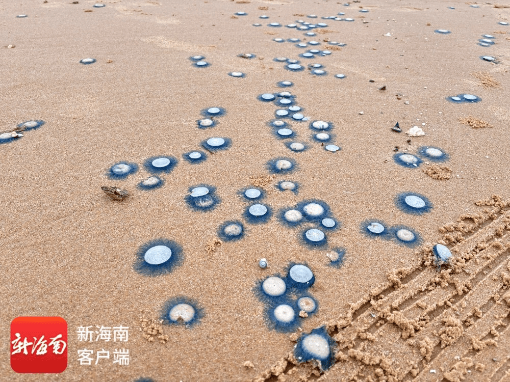 10月21日下午,海口西海岸呈现出一幅奇异的景象——从帆船帆板训练基地到夏威夷海岸的沙滩上,密密麻麻铺满了形似硬币的蓝色生物。环卫师傅巡岗时撞见这阵仗,当场“瞳孔地震”,立马报告有关部门。