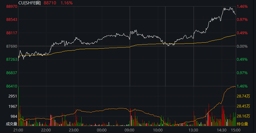 债市方面,国债期货多数走强。商品方面,国内商品期货普遍上涨,集运指数涨超5%,跟随伦铜涨势,沪铜也创下历史新高。值得注意的是,香港股市今天休市。核心市场走势: