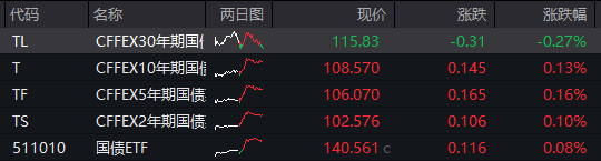 债市:国债期货多数上涨,截至收盘,30年期主力合约跌0.27%,10年期主力合约涨0.13%,5年期主力合约涨0.16%,2年期主力合约涨0.10%。