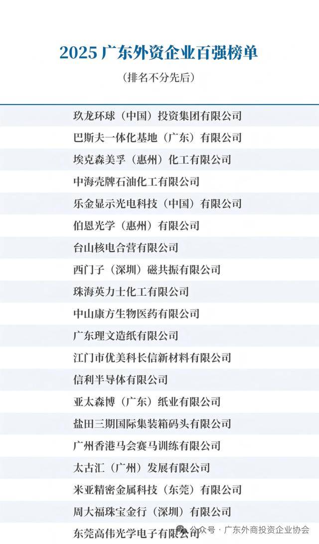 广东外商投资企业协会秘书长王奕介绍,“2025广东外资企业百强榜单”展示外资企业对广东经济社会发展的贡献,根据企业外方投资者在广东累计直接投资金额作为主要依据,并综合考量营业收入、业务属性、守法守信等因素评定。