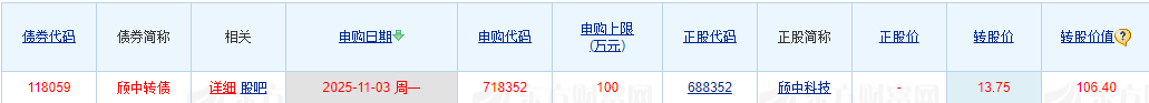 11月3日,可转债打新市场迎来颀中科技(688352)发行的可转债——颀中转债。它的发行规模为8.50亿元,规模较小。债券评级为AA+,评级较高。