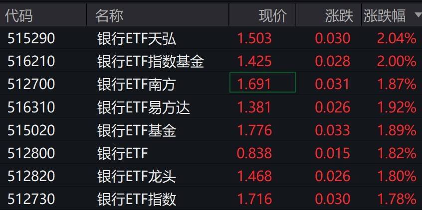 上一篇:银行股逆市集体走强!盘中劲涨近2%,顶流银行ETF(512800)单日狂揽6.8亿元