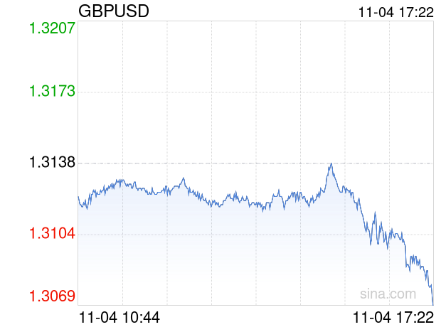 新浪外汇消息2025年11月04日,截至17时22分,外汇市场上英镑兑美元汇率跌破1英镑兑换1.3072美元。跌幅为-0.5024%