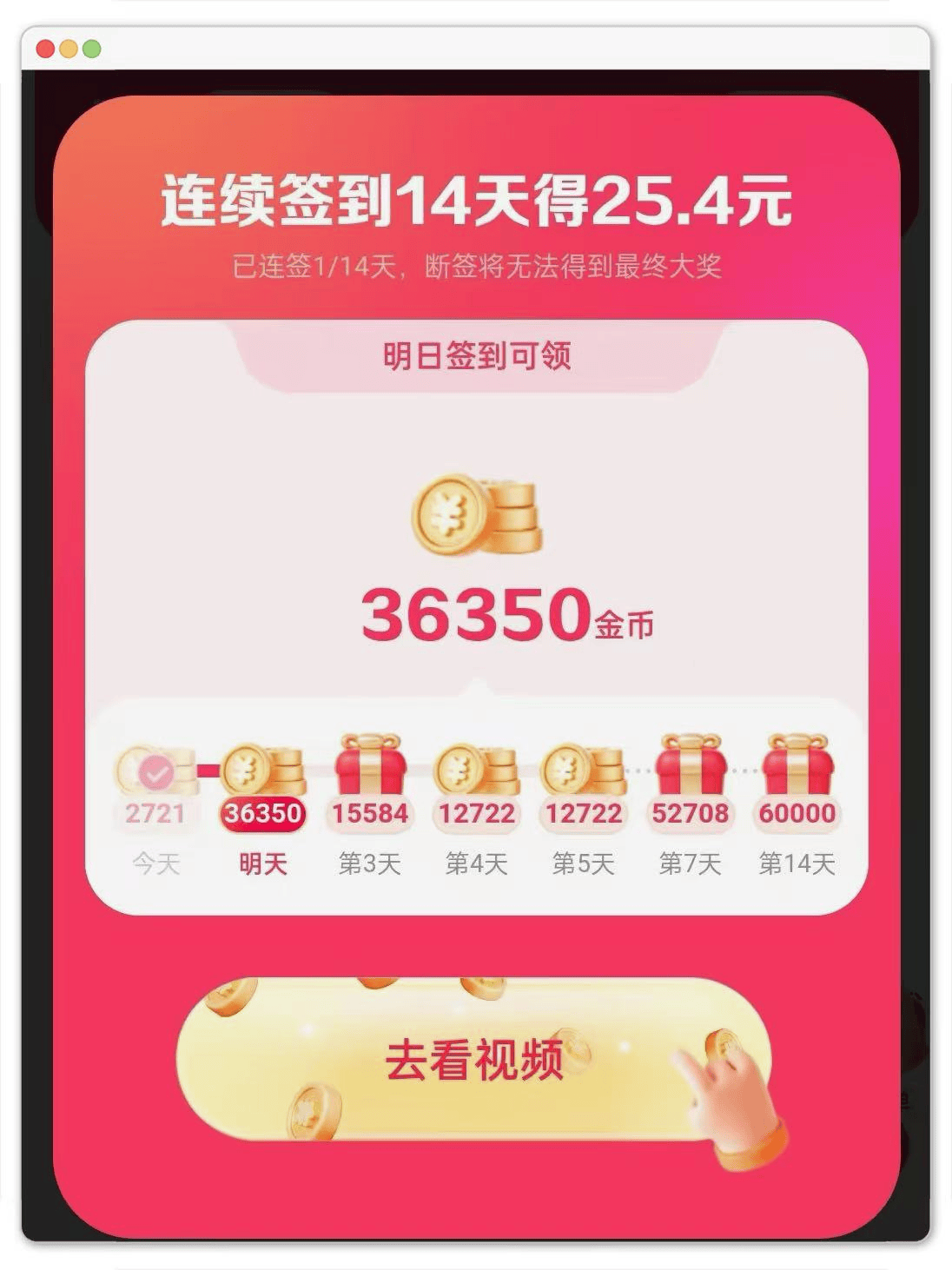 目前,据我所知,目前快手极速版签到升级暴涨金币的策略,有两个,一个是静置召回法,一个是断签刷新法。