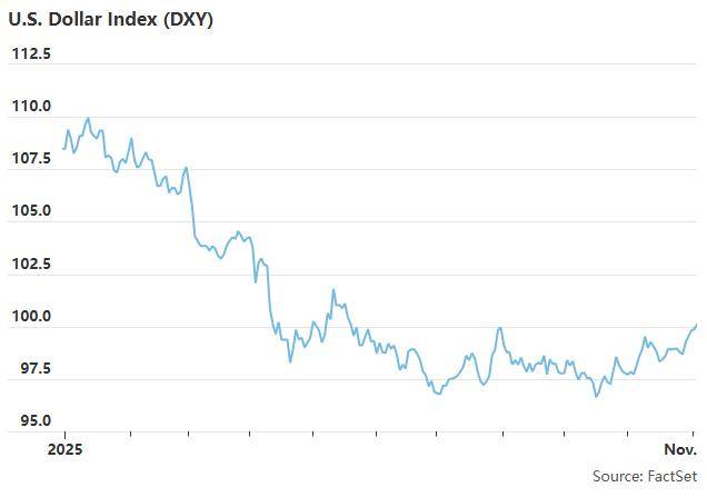 由于交易员早已将美联储9月降息计入预期——鲍威尔称此举属于“风险管理”——这令市场对激进宽松周期的期待落空。即便美联储在10月29日再次降息25个基点后,美元指数在上月及11月初仍持续攀升。