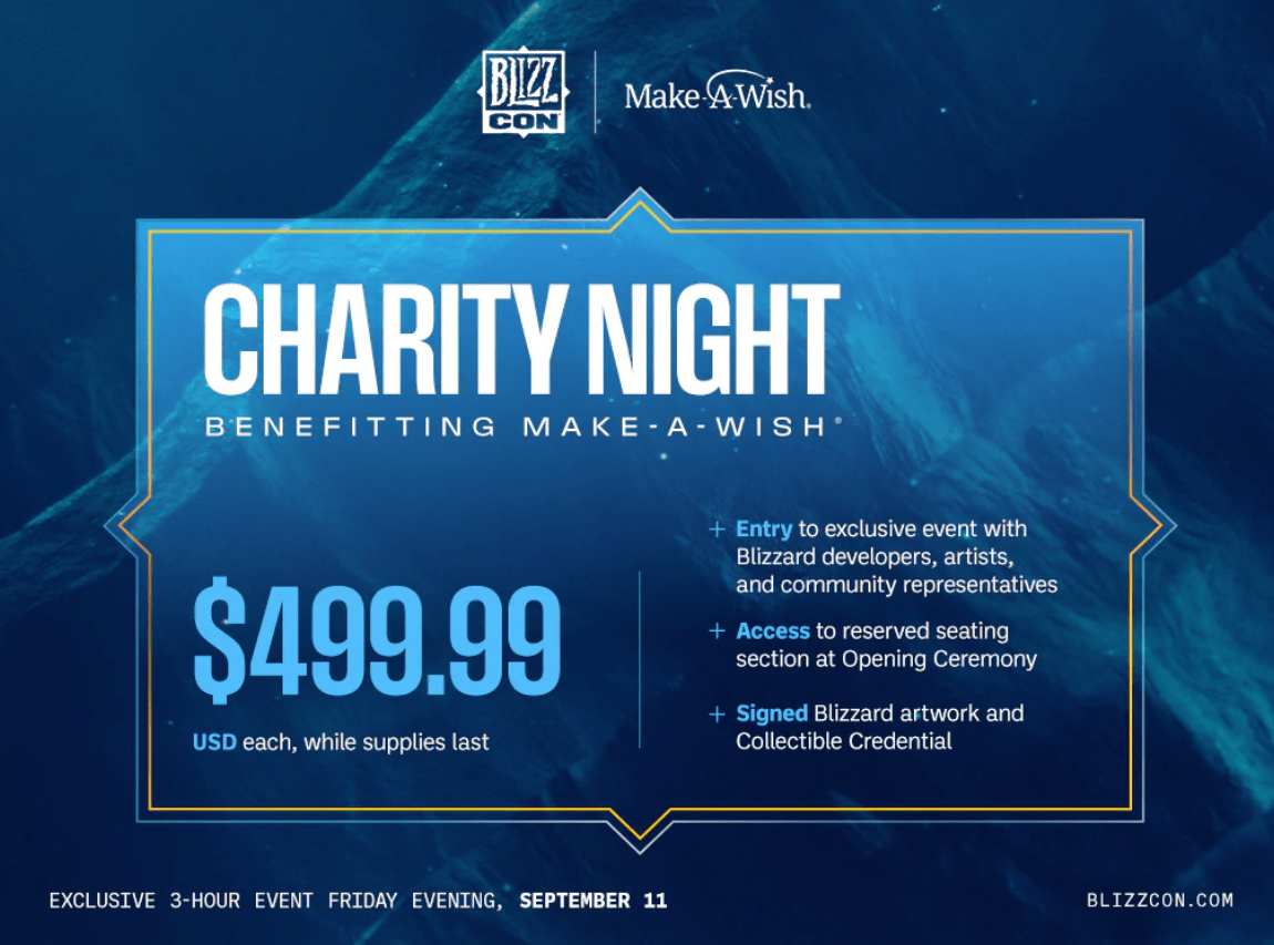 暴雪公司的开发人员、艺术家及社群代表的专属活动。全包价为499.99美元,除了参加这场专属活动,还能享有暴雪嘉年华开幕典礼的专属座位、一件签名版的暴雪美术品,以及一张收藏版纪念证。