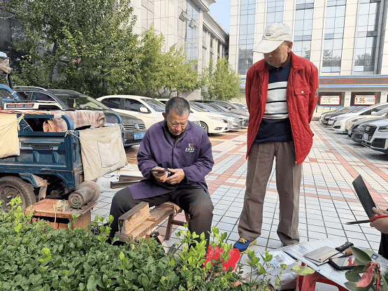 济宁分行营业部将传统磨刀师傅请到网点门口,为居民提供免费服务。工作人员借此机会与居民群众亲切交流,讲解金融诈骗防范知识、介绍金融产品,活动现场暖意融融。