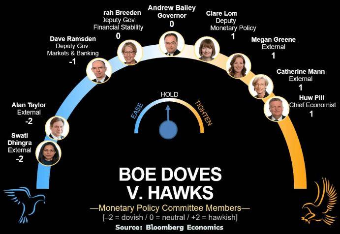 英国央行货币政策委员会鹰鸽一览图 政策指引