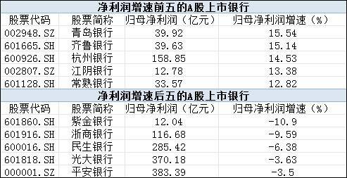 净利润表现整体优于营收。今年前三季度,42家A股上市银行整体净利润增速达1.5%,较上半年提升0.7个百分点。42家银行中,有36家实现正增长,6家负增长。山东两家城商行青岛银行、齐鲁银行分别以15.54%、15.14%的净利润增速,位居第一、第二位,杭州银行和江阴银行也分别实现14.53% 和13.38% 的高增长。