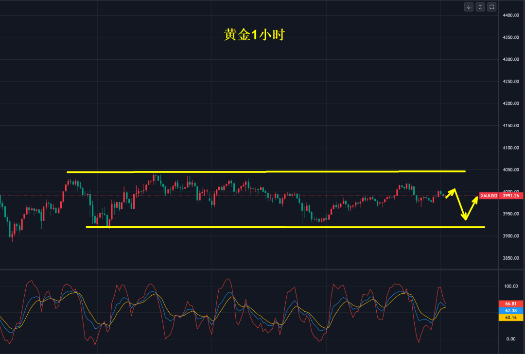 从图中结构来看,震荡还没有结束,箱体内来回的震荡卡缘位置入场即可,记住一点,只要4050美元没有破位,短线调整就没有结束。