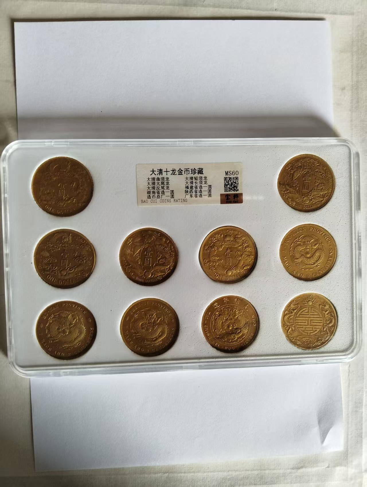 大清十龙金币珍藏:近代机制币的文明缩影与收藏价值解析这套大清十龙金币珍藏,是近代中国机制币文化的集中体现,承载着晚清金融改革的历史记忆,也凝聚着收藏界对“龙洋”题材的特殊情结。以下从历史背景、钱币细节、收藏价值、文化意义等维度,对这套珍藏进行深度解析。