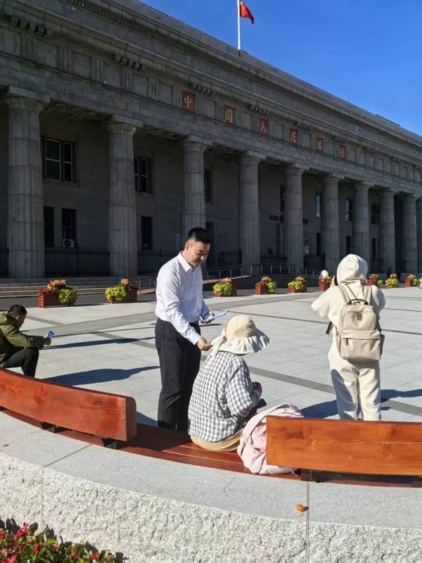 宣传员结合近期高发典型诈骗案例,如“虚假理财陷阱”“刷单返利”“保健品投资”“冒充客服退款”等,进行生动细致的讲解,揭露诈骗分子的惯用手法和话术。累计发放反诈资料1200余份,解答咨询100余人次。特别之处在于,讲解巧妙地融入了伪满中央银行的历史文化背景,引导游客在铭记历史的同时,增强对现代金融风险的警惕性。讲解员指着复原的历史场景说:“过去守护财富靠坚固的库房和守卫,今天守护‘钱袋子’更需要我们擦亮双眼,掌握识诈防诈的知识!”历史与现实的对比,让反诈宣传更具深度与感染力。