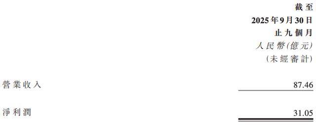 据2025年第三季度财务数据概要披露,前三季度,该行实现营业收入87.46亿元、净利润31.05亿元。不过,由于该行并未发布2024年三季报,所以无法横向对比该行今年前三季度的营收和净利润同比增速。