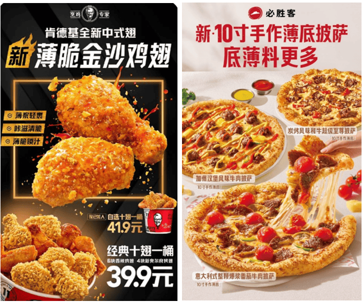 产品创新上,肯德基在经典产品新奥尔良烤翅和香辣鸡翅的基础上,推出了“薄脆金沙鸡翅”,在促销期间,新款鸡翅的销量激增,与烤鸡翅的受欢迎程度不相上下,展现出作为未来增长引擎的巨大潜力。必胜客则推出了新品“手作薄底披萨”,获得顾客好评,复购率可观,并迅速成为最畅销的披萨饼底。