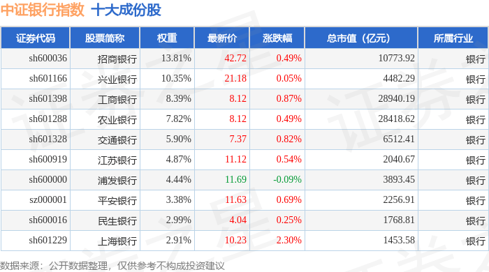 证券之星消息,11月10日,中证银行(399986)指数报收于7789.49点,涨0.65%,成交258.88亿元,换手率0.25%。当日该指数成份股中,上涨的有37家,厦门银行以2.9%的涨幅领涨,下跌的有3家,江阴银行以0.2%的跌幅领跌。