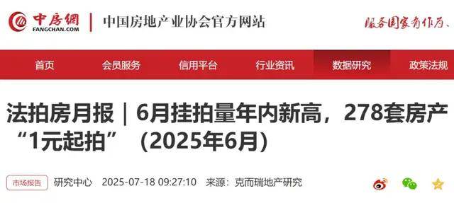 2025年6月,法拍房供应规模3.2万套,创年内新高,成交3215套。6月挂拍法拍房平均起拍折价率为28.4%,环比下降0.5个百分点,为2025年以来第二低点;成交法拍房的平均折价率31.3%,环比下降1.2个百分点。折价太多,银行也不能接受,干脆接受实物抵债,把房子先拿到自己手上,然后再卖。