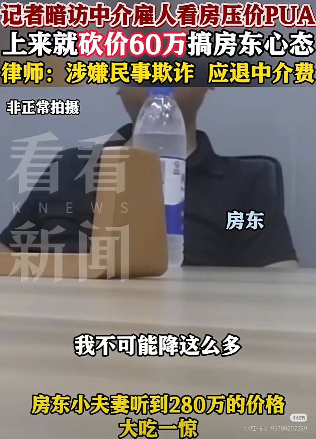 上海某房东要卖房,心理预期的底价是538万元,但中介和买家却张口就砍到480万元,直接报出了房主的心理底价,态度还非常强硬。但实际上“买家是假的,交易也是假的”,一些中介招募“临时演员”来看房,或者直接扮演买家,把价格压到“白菜价”给房东施压,击溃房主的心理防线后,逼你“割肉”甩卖,他们再低价吃进,转手赚差价。