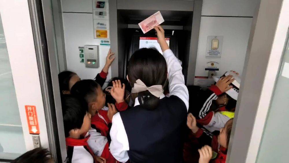理论学习与趣味游戏之后,小交警小记者们在工作人员的引导下,来到了自助服务区,亲身体验了ATM机的操作流程。从插卡、输入密码到选择取款金额、取回卡片,每一个步骤都让孩子们感到新奇不已,对金融科技带来的便捷有了最直观地认识。