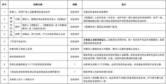 一、商转公贷款申请材料