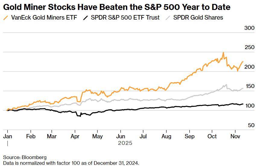 今年迄今为止,黄金矿业股的表现优于标普500指数