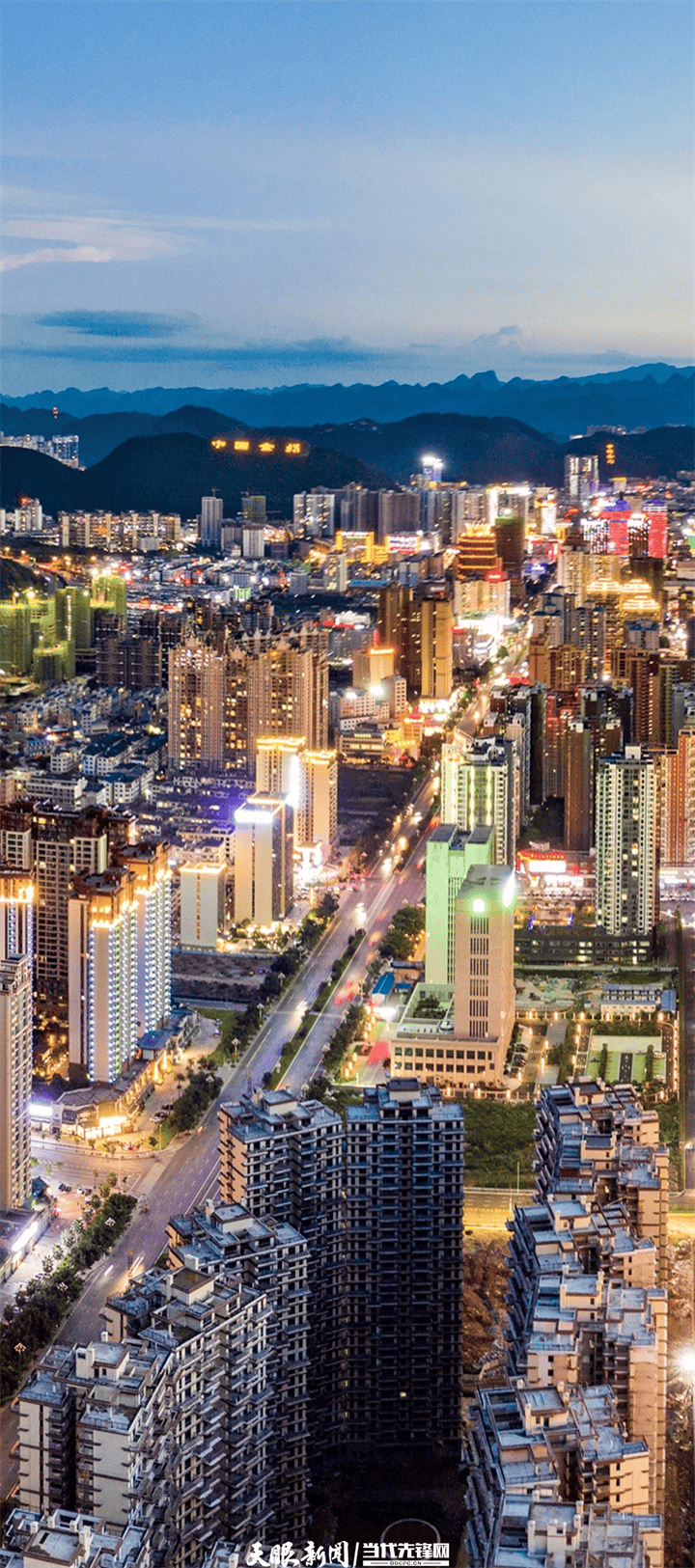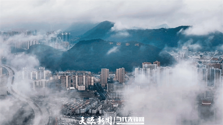 站在黔西南州兴义市桔山大道远眺,道路尽头山体上“中国金州”四个金色大字十分显眼。
