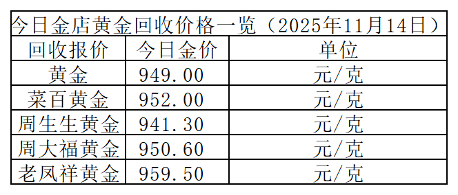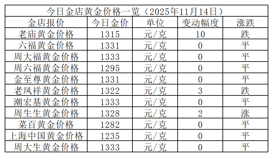 金价稍缓!2025年11月14日各大金店黄金价格多少一克?