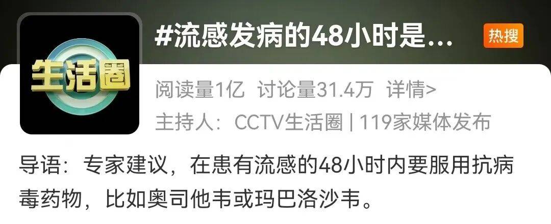 “流感发病的48小时是自救黄金时间”登上热搜