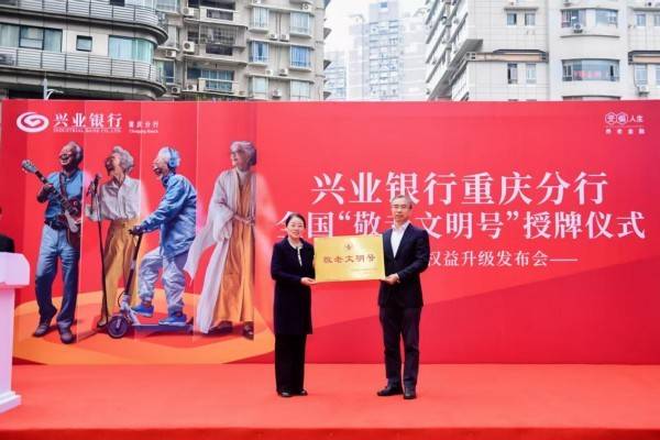 11月13日,兴业银行重庆分行在营业部广场举行2025年全国“敬老文明号”授牌暨安愉权益升级发布会。