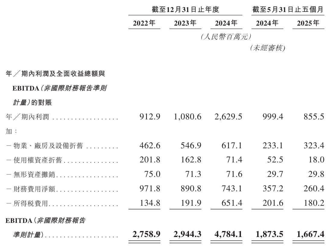 创新国际2022年、2023年、2024年EBITDA分别为27.59亿、29.44亿元、47.84亿元;2025年前5个月EBITDA为16.67亿元,上年同期的EBITDA为18.73亿元。
