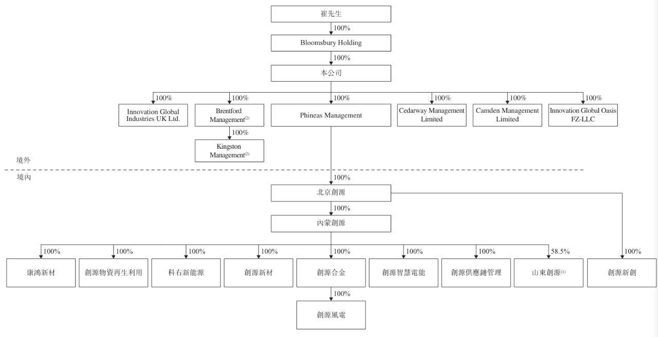 IPO前,崔立新通过其全资子公司Bloomsbury Holding,有权控制创新国际已发行股份100%投票权的行使。