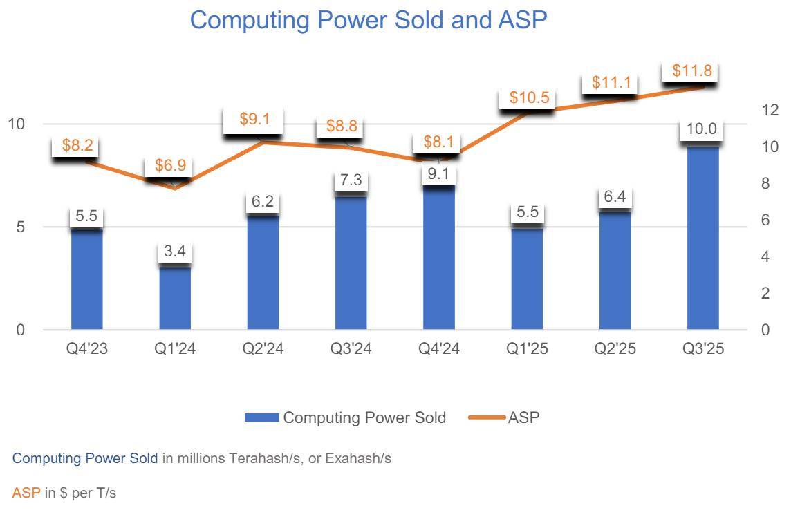 嘉楠科技董事长兼首席执行官张楠赓表示:“第三季度,嘉楠科技算力销量突破10EH/s,环比激增55.6%,面向零售及分销渠道的AvalonHome系列贡献营收占比逾8%。季末在线矿机规模达9.3EH/s,依托低成本电力与效率提升,当季挖出267枚BTC,单币平均收入114485美元。”