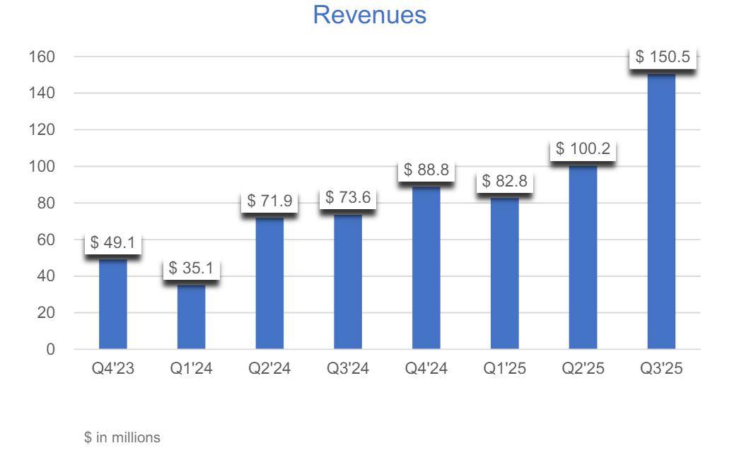 嘉楠科技(NASDAQ:CAN)今日发布截至2025年9月30日的财报。财报显示,嘉楠科技2025年第三季度营收为1.505亿美元,较上年同期的7361万美元增长104.4%。