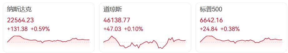 周三美股小幅收高,投资者等待英伟达收盘后发布的季度财报;与此同时,美联储10月会议纪要公布后,美国国债收益率上升。截至收盘,道指涨47.03点,涨幅0.10%,报46138.77点,纳指涨0.59%,报22564.23点,标普500指数涨0.38%,报6642.16点。道指、标普500指数结束日线四连阴。