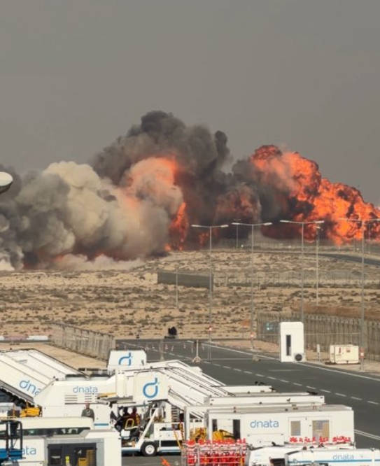 网传视频显示,该战斗机高速坠落地面,随后发生剧烈爆炸,机场上空升起滚滚黑烟,现场观众发出惊呼声。