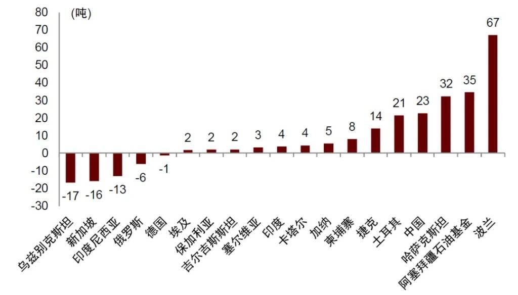 图表7:央行的黄金持有量变动(2025年前三季度)