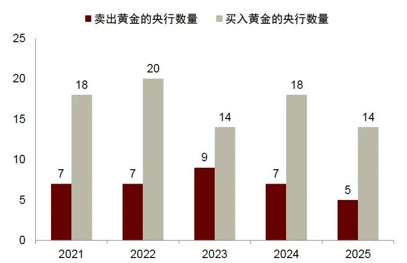 注:仅统计了增持、减持超过1吨的央行数量。2025年数据截至三季度